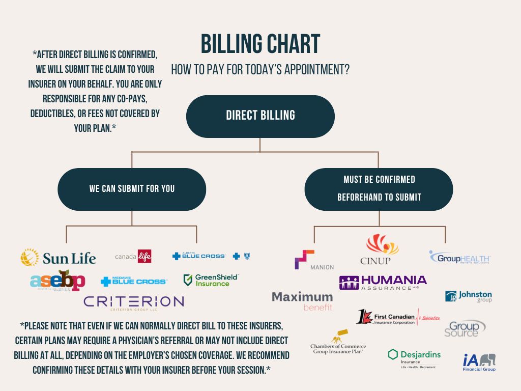 The flowchart above is provided by Mind Conscious Psychological Services Clinic to help clients understand how to access psychological services through their accident benefits. While we strive to provide accurate and up-to-date information, the Government of Alberta remains the official source for all automobile insurance and accident benefits details. Please refer to alberta.ca or contact your insurer for official information.